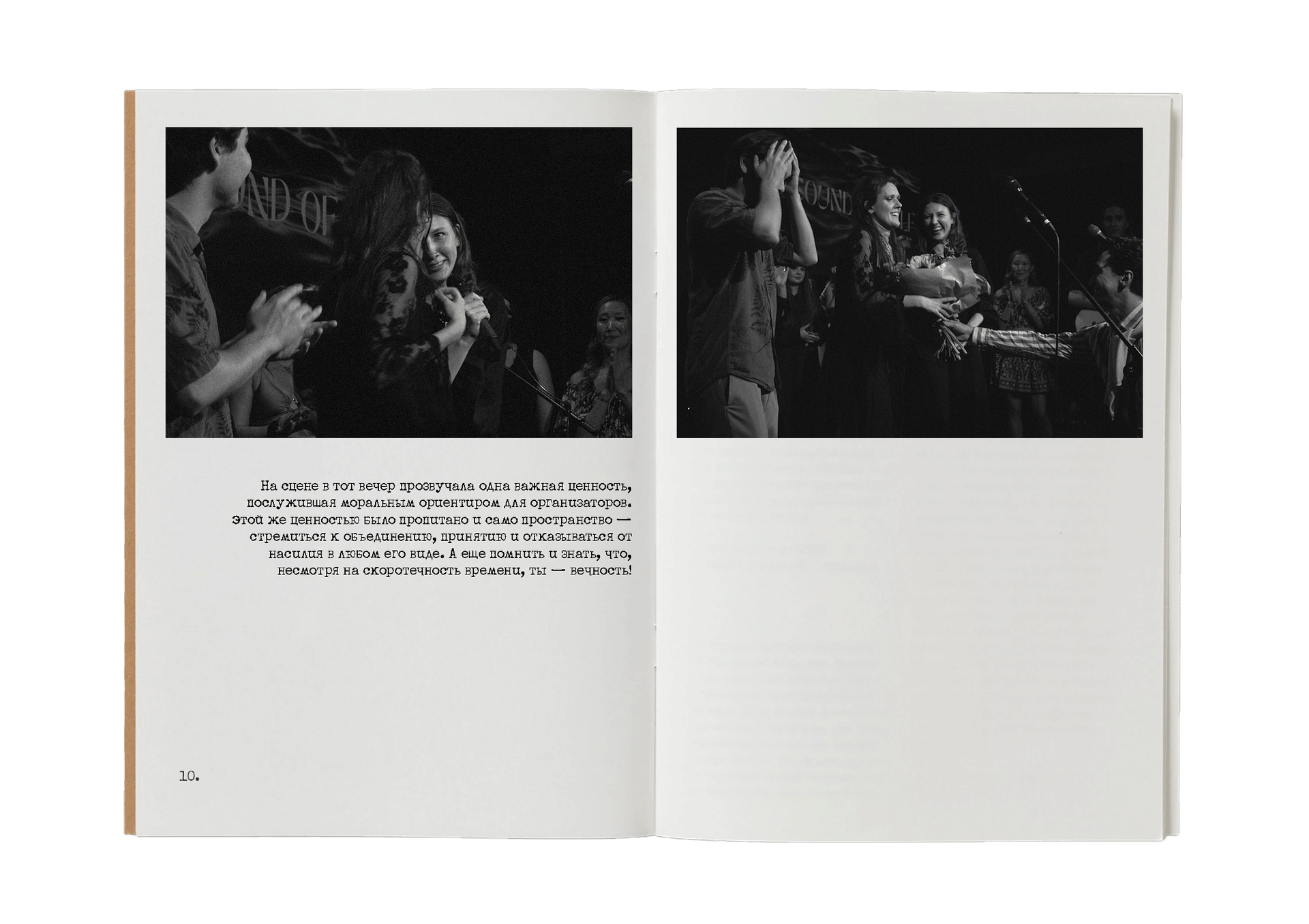 На сцене в тот вечер прозвучала одна важная ценность, послужившая моральным ориентиром для организаторов. Этой же ценностью было пропитано и само пространство — стремиться к объединению, принятию и отказываться от насилия в любом его виде. А еще помнить и знать, что, несмотря на скоротечность времени, ты — вечность!